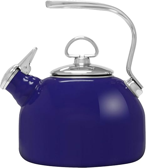 Amazon Com Chantal Classic Enamel On Steel Whistling Teakettle 1 8 Quarts Cobalt Blue Chantal Tea Kettle Home Kitchen