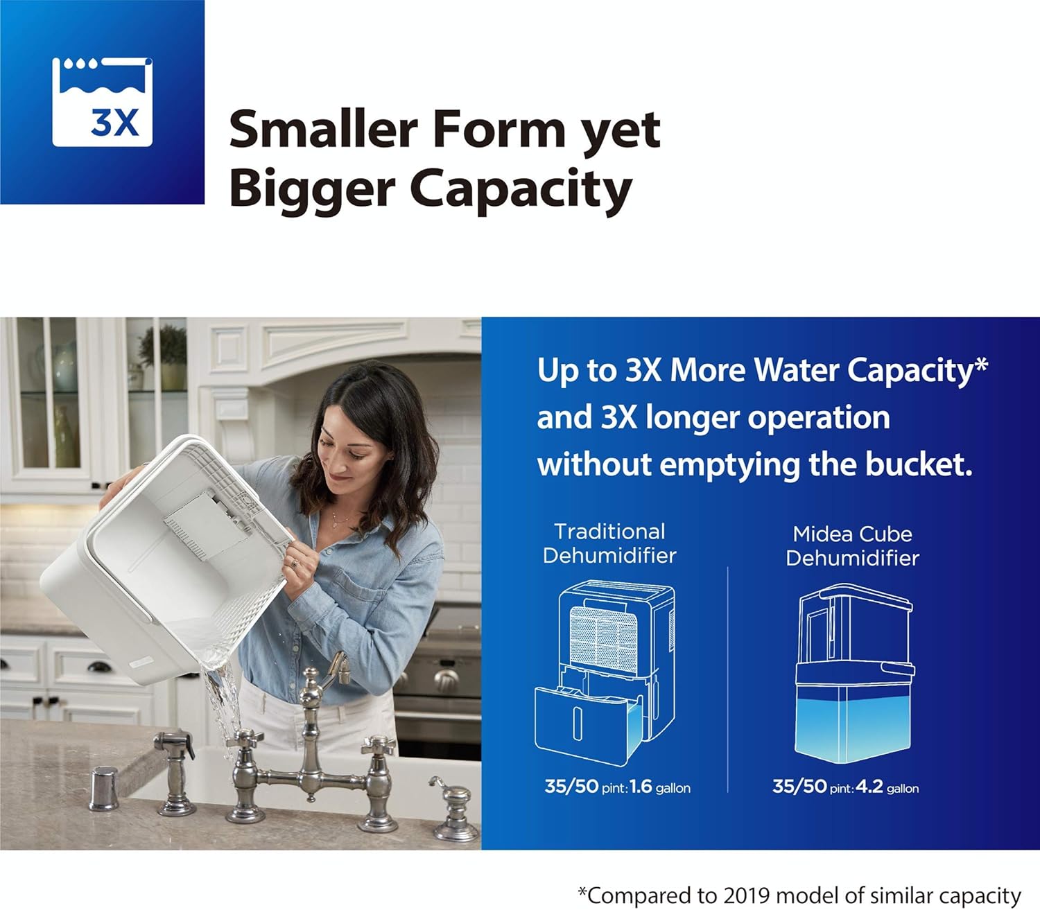 Midea Cube 50 Pint Dehumidifier with Smart Wi-Fi For Up to 4500 Sq. If you have any other questions please reach out to us on Facebook at mmeMideaAmerica. 4500 SQ FT DEHUMIDIFIER Mideas dehumidifier is able to collect 50 pints 70 pint 2019 DOE standard of water a day and adjust humidity from 35 to 85.